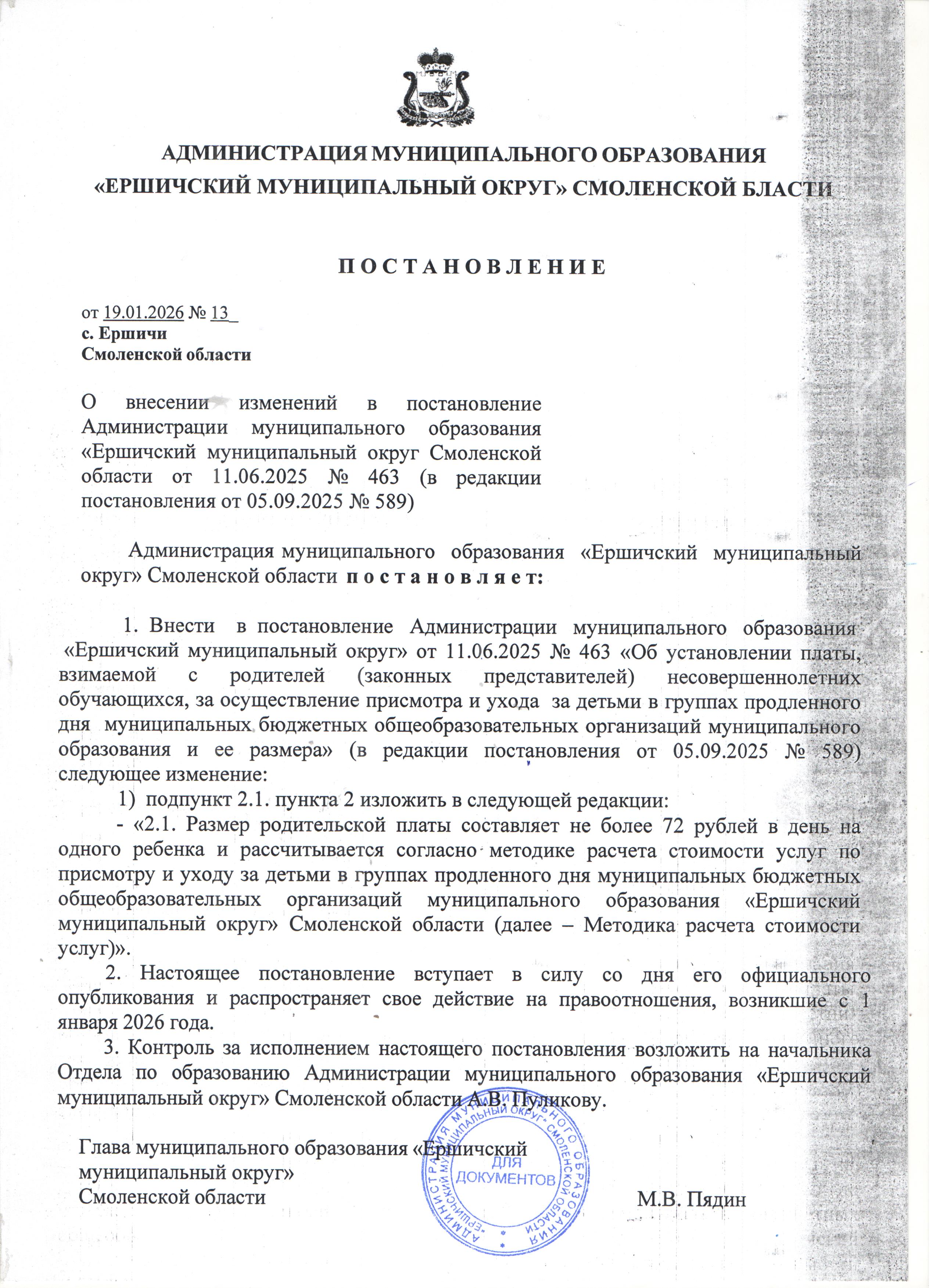 О внесении изменений в постановление Администрации муниципального образования - Ершичский район Смоленской области от 07.09.2016 № 236 (в редакции постановления от 03.07.2017 № 267)