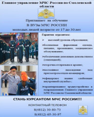 Главное управление МЧС России по Смоленской области приглашает на обучение в ВУЗы МЧС России: