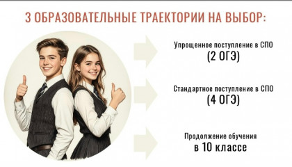 В рамках эксперимента для выпускников 9 класса доступны 3 образовательные траектории.